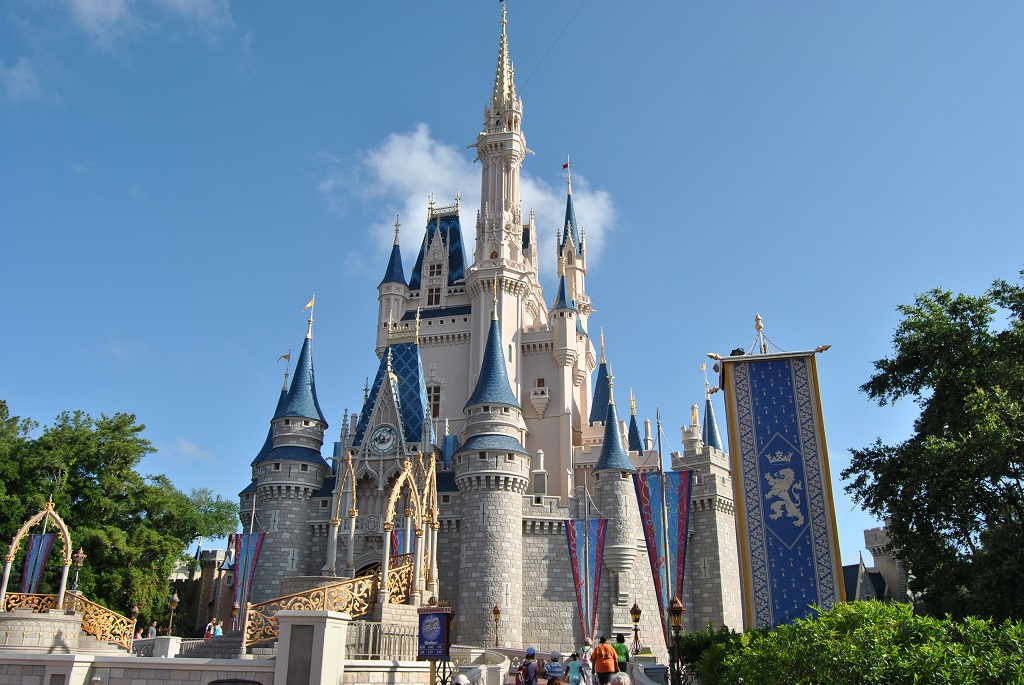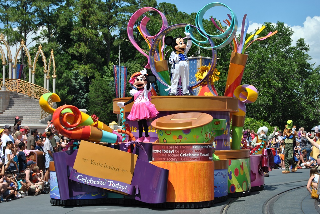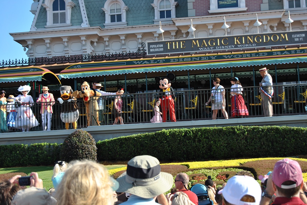 This holiday did start with a flight from Schiphol at Amsterdam to the international Airport of Orlando in Florida. In comparison with 10 years ago, we are now with only just the 2 of us. On the airport we did pickup our rental car and we did drive to our first Hotel ("Blue Palm Resort ***") in Orlando. There we did stay for 3 nights. From this hotel we did visit the first day Orlando. A town with a small centre where you can find a real and nice steam locomotive. There are also very high office buidings. The second day we did go with a hotel-shuttle to Disney's Magic Kingdom. The shuttle did bring us to Epcot, and from there we did go by Disney's internal transport (monorail) to Magic Kingdom. During this bus or monorail trip (on May 26, 2010), the space shuttle Atlantis did land for the last time on KCS. However we did not see this event because we did not hear the Sonic boom. For the very first time we were at the official day opening of Magic Kingdom. Then a Train arrives and all famous Disney characters are waving to the people and they do welcome you and asking you to enter the park.
