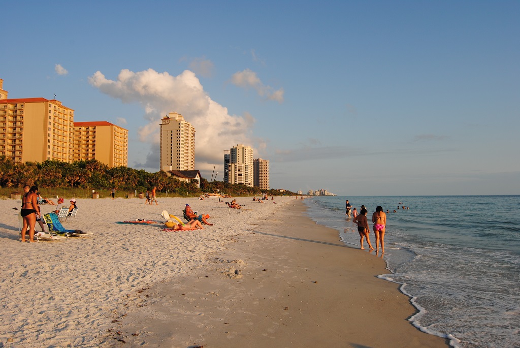 From Keywest we did drive back over the 42 bridges with the destination Naples (just below Fort Myers), where we were also 10 years ago. We did stay now far most in the north of Naples, and also more closely to the beach. We did drive to Naples South to see the pier were we did go to the beach then in 2000. What we did see now, is that there were no pelicans on the pier. Every roof was protected with wire, so the pelicans where not able to sit on the roofs. We did see just as 10 years ago dolphins and even a sea turtle swimming in the sea.