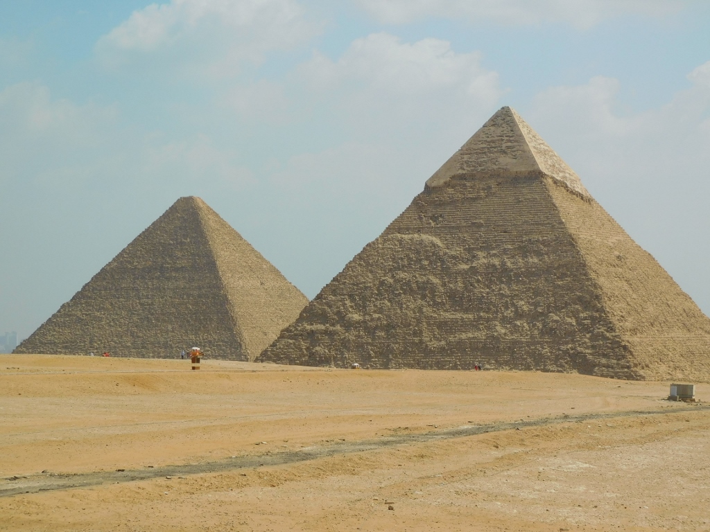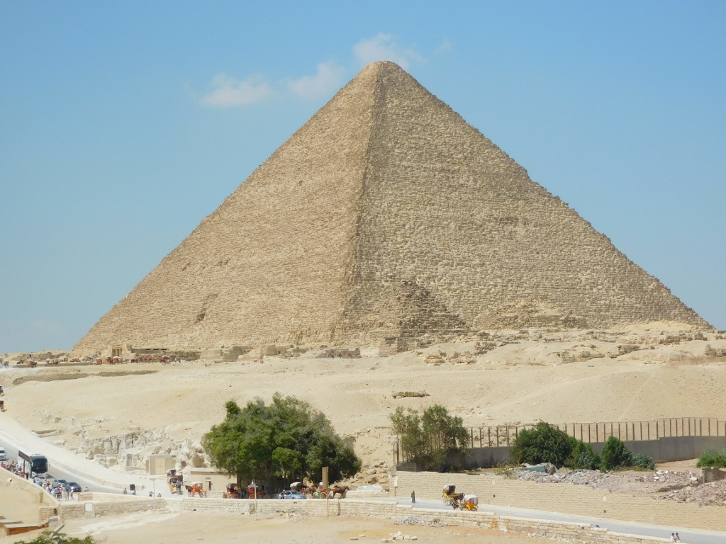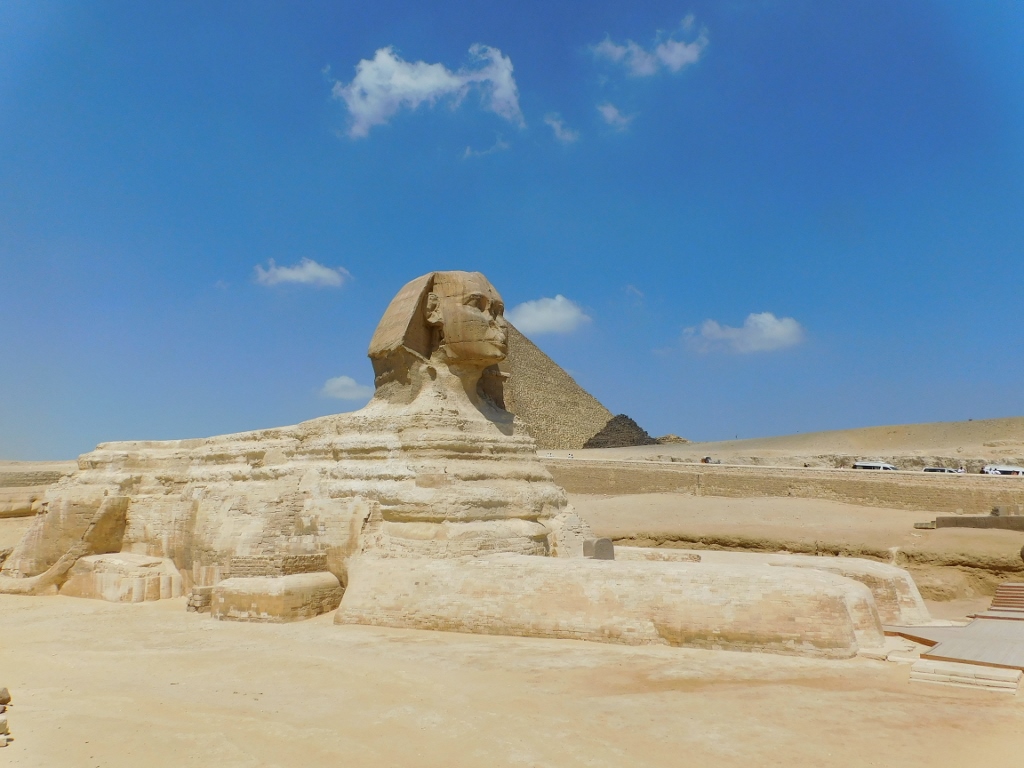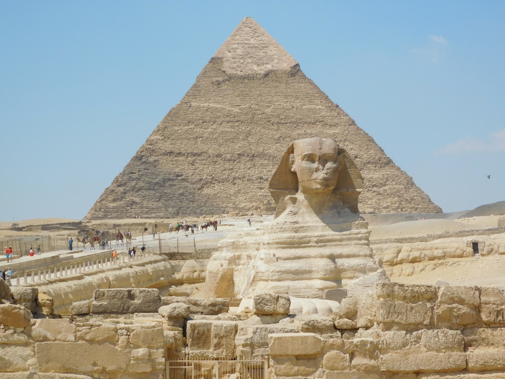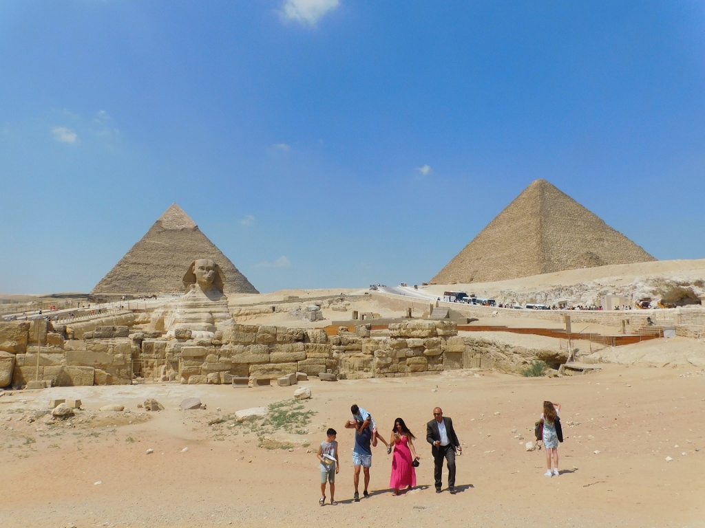 After a short night we went from Cairo to the pyramids of Giza. After a drink on a roof terrace, with a view of the pyramids, we went to the Sphinx. Finally we went by bus, with lunch on the way, to Sakkara, where the step pyramid of Djoser is located.