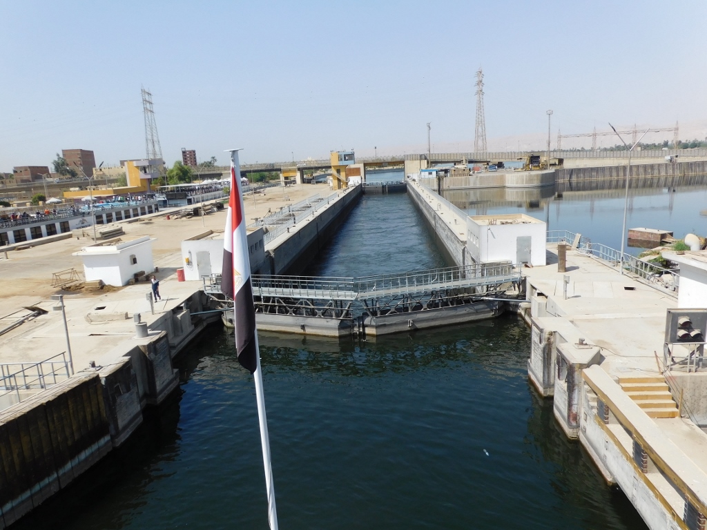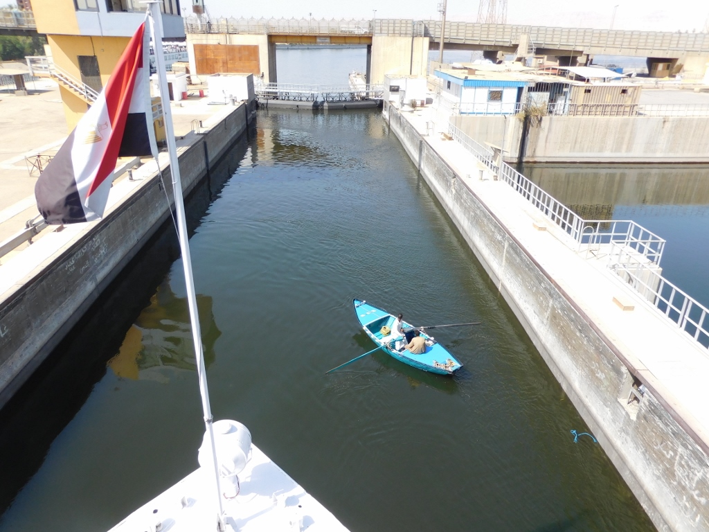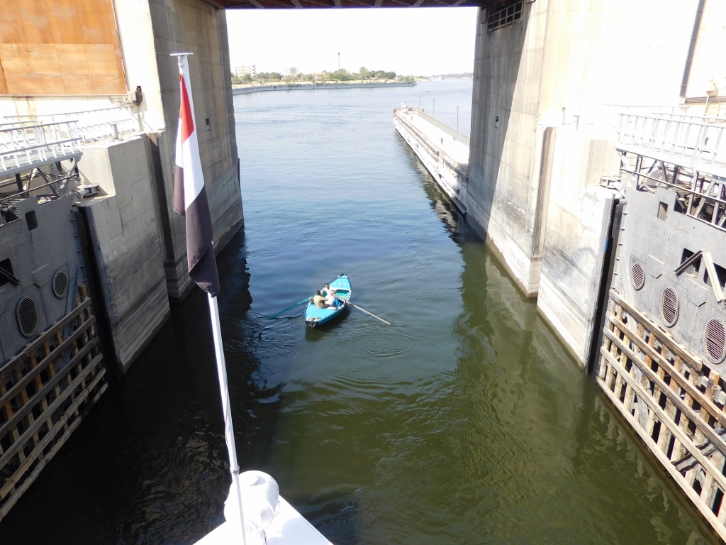 The next morning we got up early to visit the temple of Horus in Edfu. This was a very beautiful and well preserved temple. After we got back on the boat, we sailed on to Luxor. We passed a lock in the Nile.