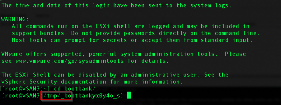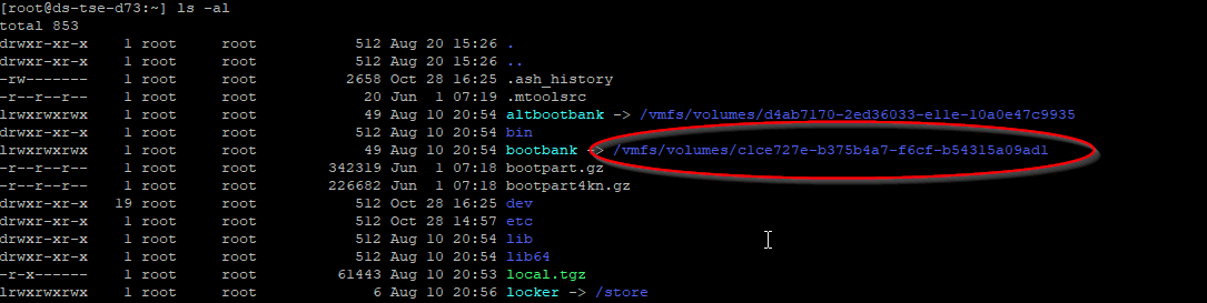 - Once the bootbank / altbootbank directories are directed to /vmfs/volumes/UUID, navigate to the bootbank directory: