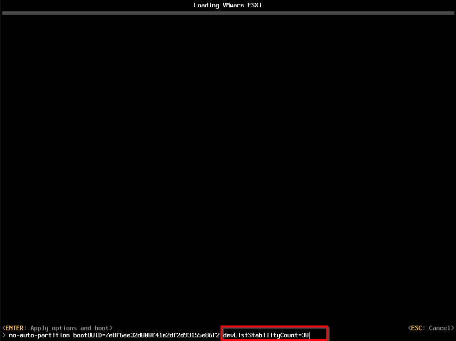 To workaround this issue, delay the storage-path-claim service to allow ESXi to retrieve the correct bootbank image from its storage device.